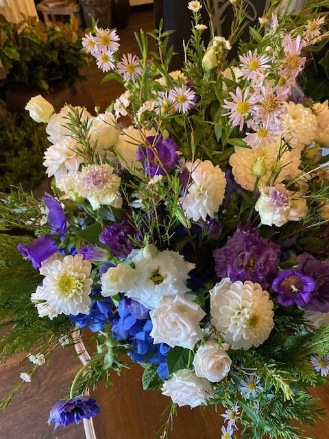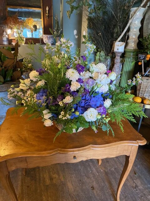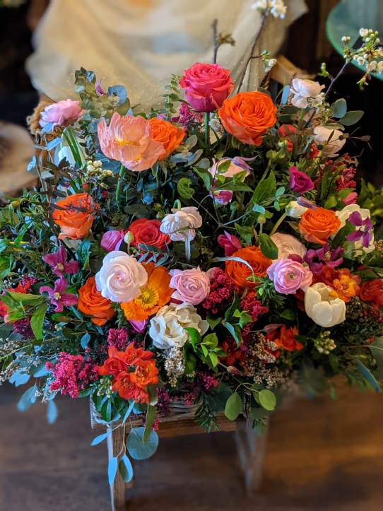 Pièce confectionnée en fonction des fleurs de saison dans le respect de votre choix de couleur dominante.